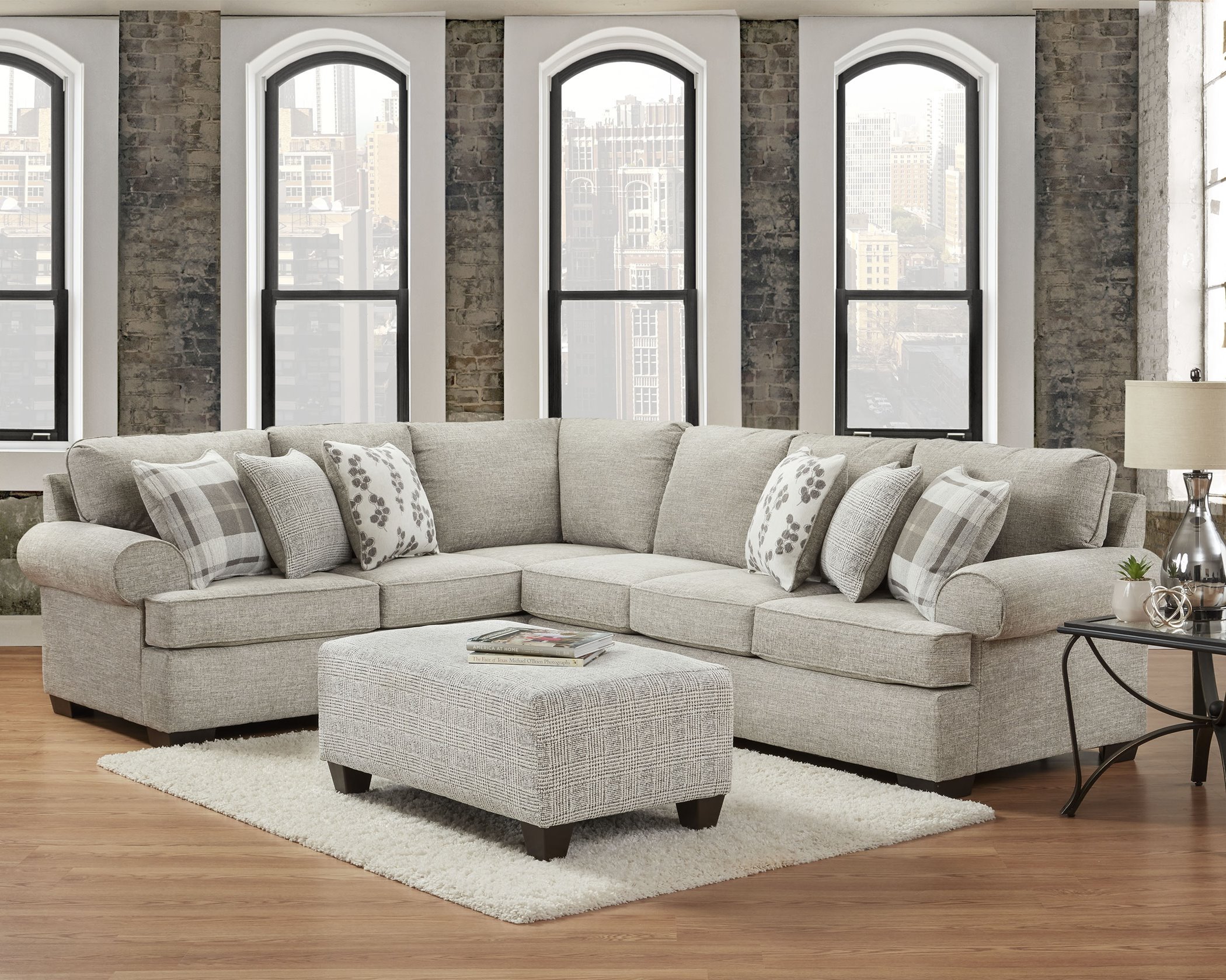 Reversible seat cushions, attached back cushions and rolled arms. This sectional is a top seller. Accent pillows are also included.