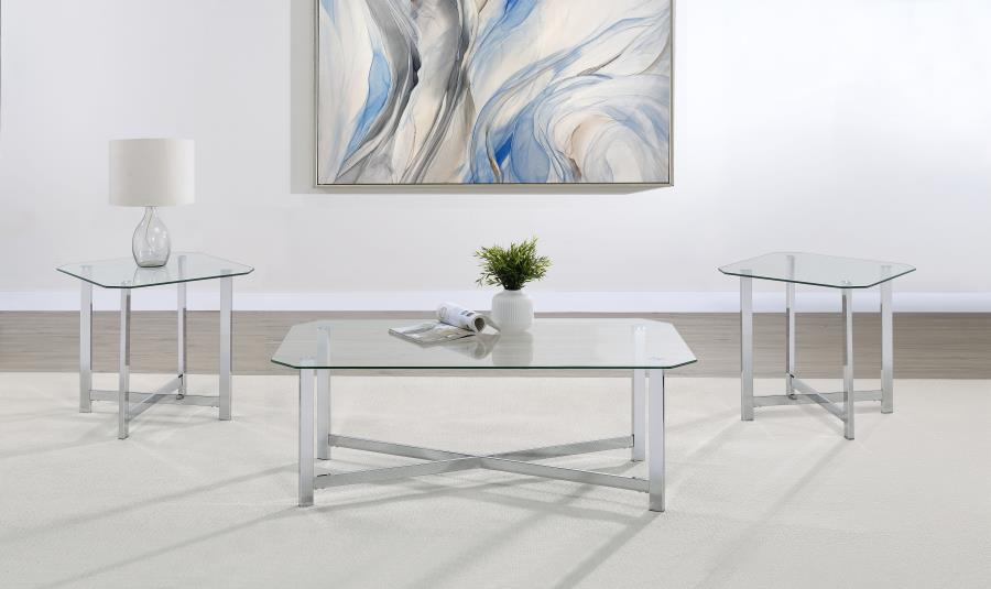 Cronin 3-piece Tempered Glass Top Coffee Table Set Chrome